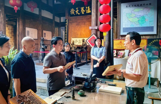 黄苇洲仔细询问了书坊乡重点文物保护利用及非遗特色产业有关情况,详细了解古建筑的历史背景与文化脉络。他指出,集团要发挥文化资源优势,支持“武夷百村”文化项目建设,围绕系列文化图书及数字化产品的联合策划、出版,致力打造具有显著区域影响力的乡村文化品牌。要充分立足并挖掘书坊乡“图书之府·建本之乡”的深厚文化底蕴,积极开展建本古籍的系统性整理工作,策划打造出版研学项目,让优秀传统文化在新时代焕发新的生机。