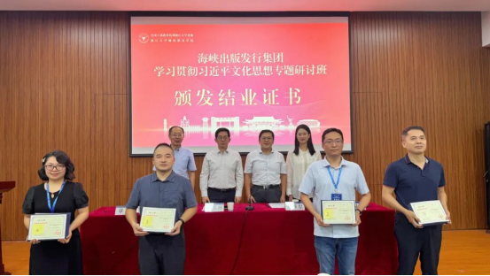 9月22日至26日,海峡出版发行集团学习贯彻习近平文化思想专题研讨班在浙江大学举办。集团党委书记、董事长黄苇洲出席结业式并作总结讲话,集团党委副书记、总经理严桂忠出席开班式并作动员讲话。集团领导谢兴权、陈爱民、陈远,所属单位和总部部门比照处级管理干部共57人参加学习培训。