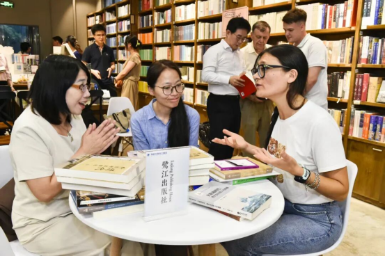 集团所属8家出版单位向欧美汉学家们介绍了各自的出版特色和重点图书品种,汉学家们不时翻阅图书,并与出版单位版权推介人深入交流,就感兴趣的出版项目洽谈了合作意向。